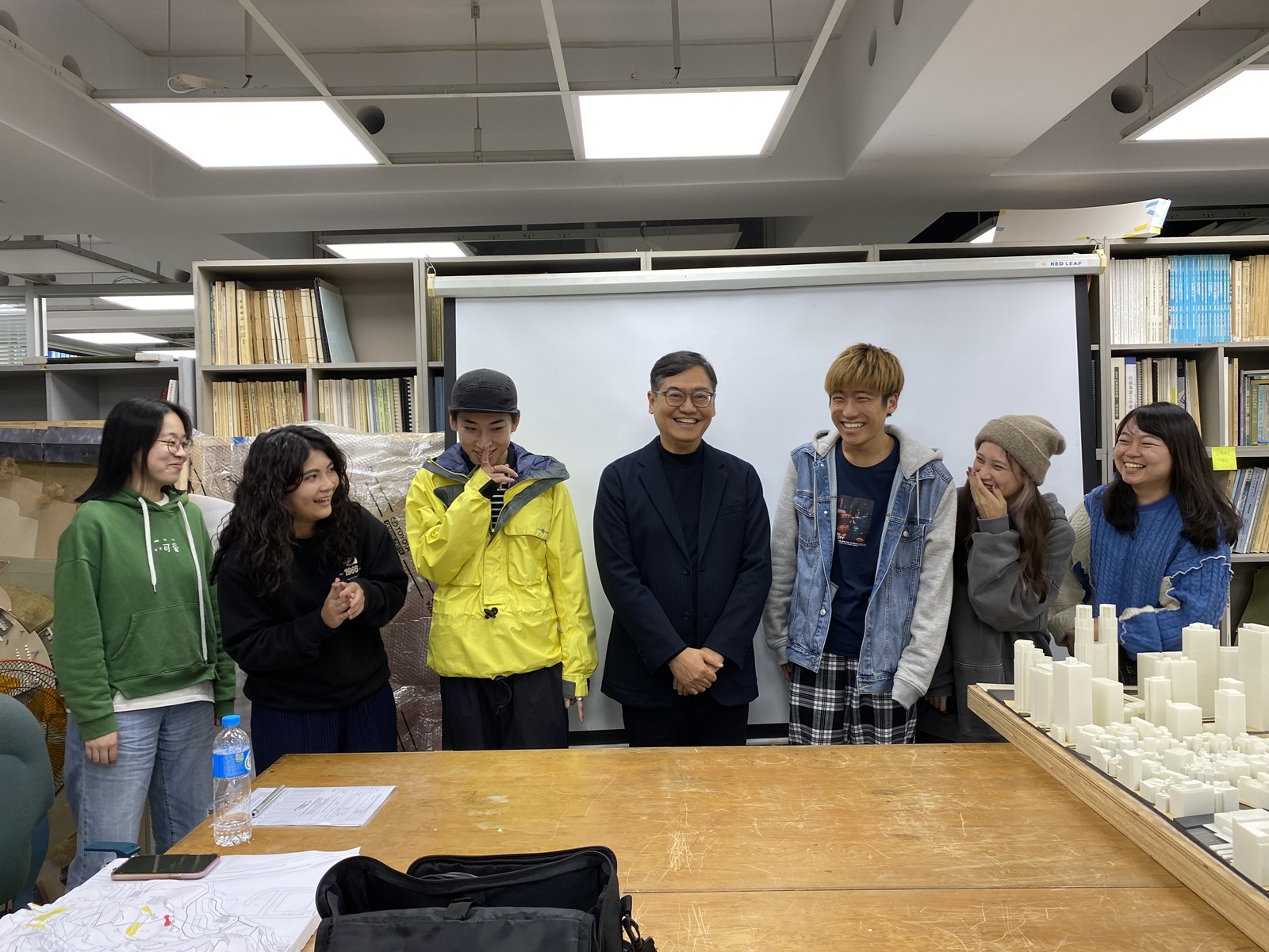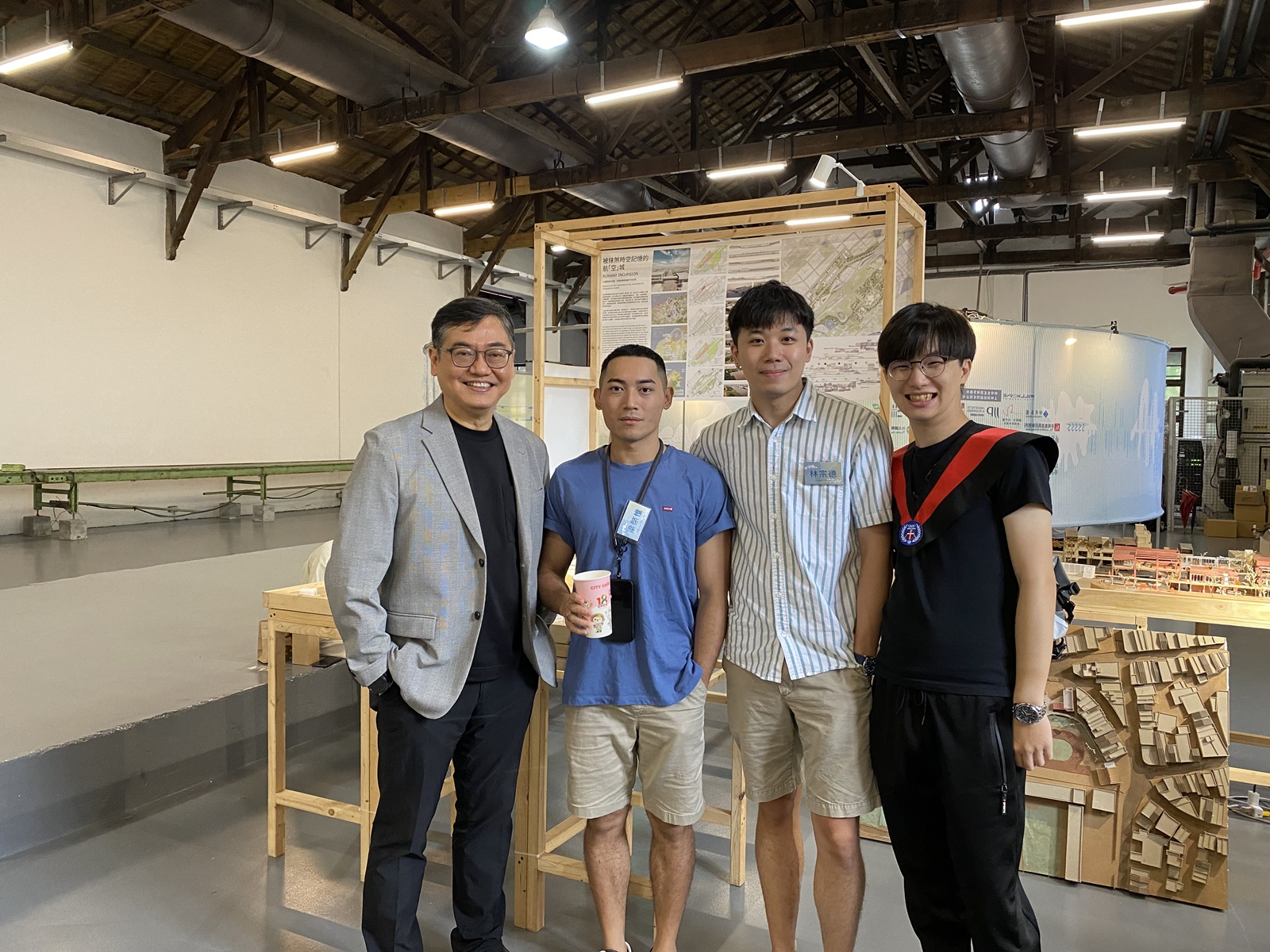 曾光宗與中原建築學生於畢業設計展合影,展現教學成果與師生情誼。