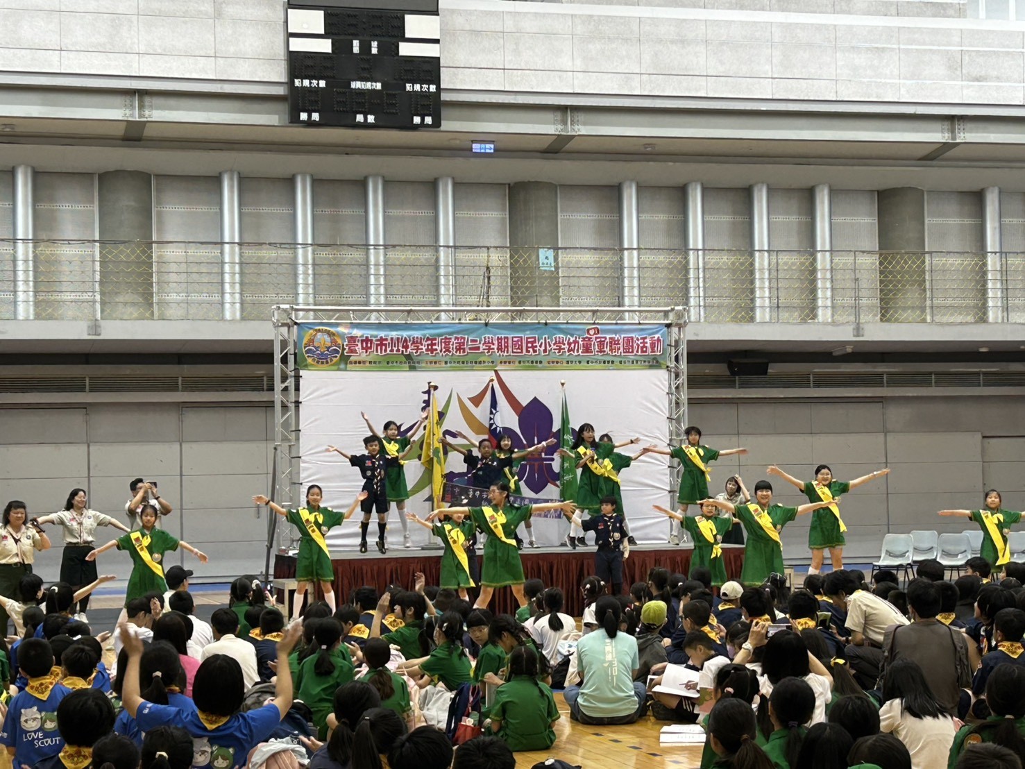 台中市114學年度第2學期幼童軍聯團活動今(29)日上午於逢甲大學體育館熱鬧登場,由梧棲區梧棲國小承辦、台中市童軍會協辦,集結42校、約748名幼童軍及服務員參與,小狼與小蛙齊聚一堂,現場氣氛活潑熱絡,展現童軍教育的蓬勃活力。