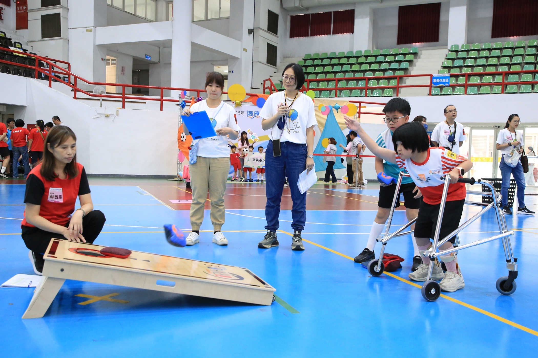 今年賽事除了足球足球項目,更是首次導入「布袋球」競賽,透過將布袋球的尺寸、重量與投擲距離,依不同年齡層與能力進行彈性調整,讓幼兒園、國小及國中肢體障礙或多重障礙學生皆能安心參與、輕鬆上手。布袋球具備器材簡單、安全性高與規則易懂等特性,不僅能有效提升手眼協調、專注力與動作控制能力,也強化學生之間的合作與互動,真正落實「人人可參與」的運動平權精神,成為本市推動適應體育的重要創新亮點。