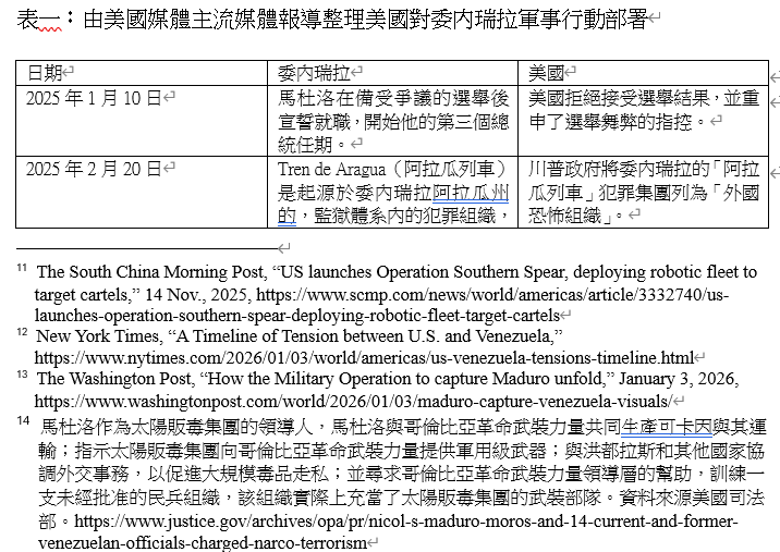 參、美國對委內瑞拉軍事行動
