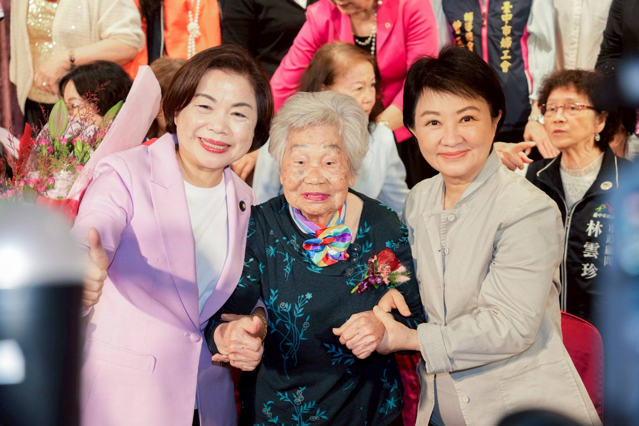 市長盧秀燕與高齡101歲婆婆林鄭珠熱情互動